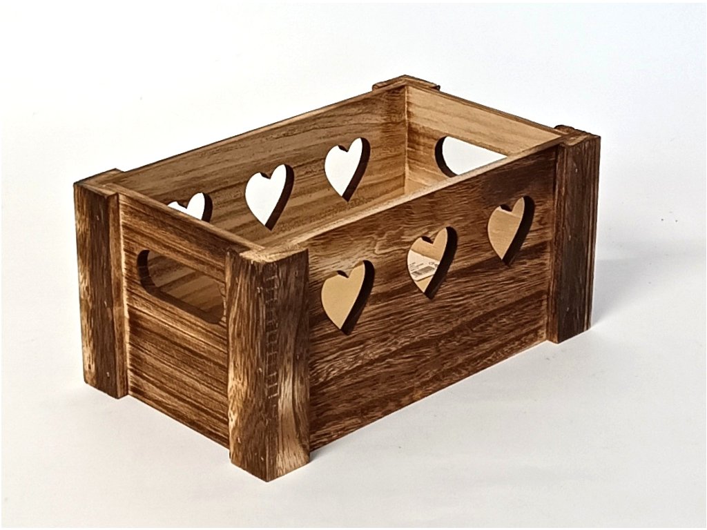 Dřevěná bedýnka 25 x 15 x 12 cm - se srdíčky