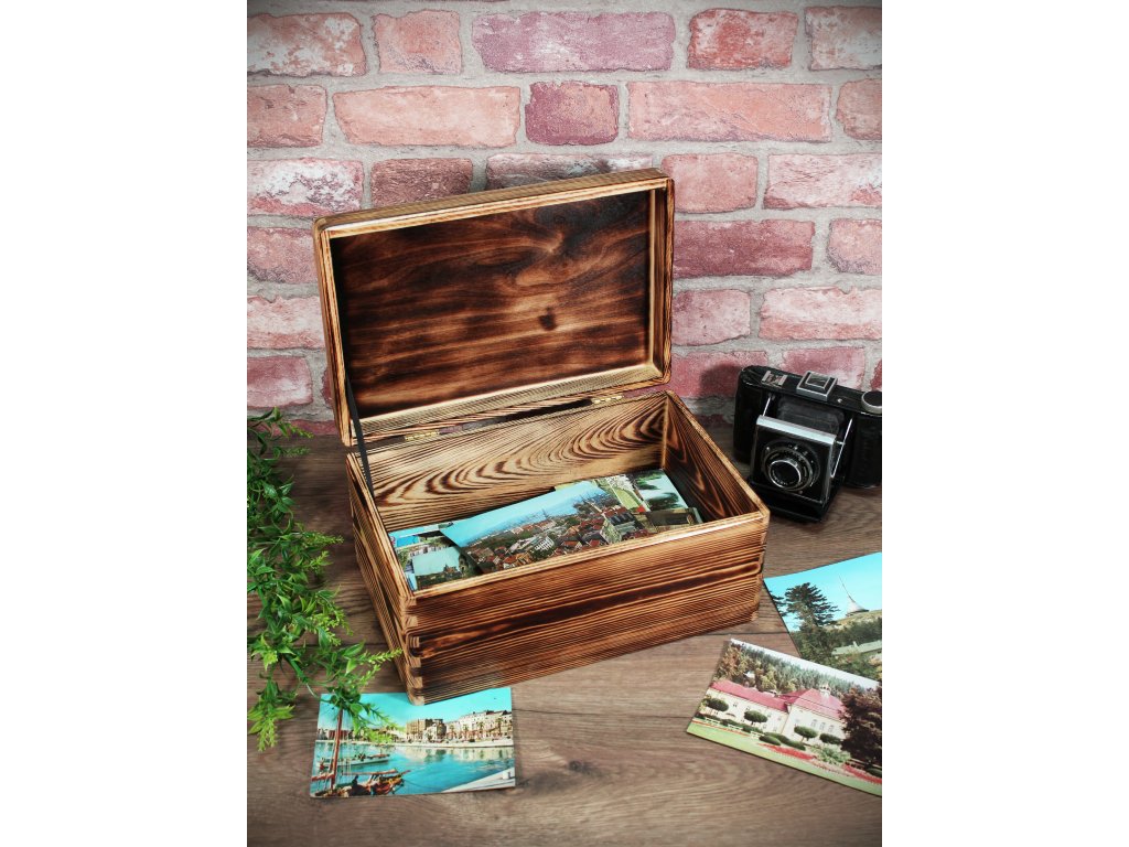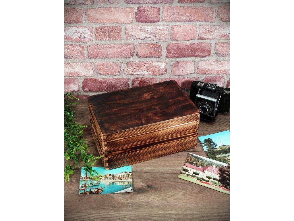 Krásná opalovaná dřevěná bedýnka všestranného využití. Můžete v ní uschovat různé drobnosti, fotografie, suvenýry z cest nebo ji využít jako originální dárkové balení (například na svatební dar). Bedýnky jsou vyrobeny z pečlivě vybraného dřeva a jsou opravdu kvalitní. Povrch bedýnky je hladký a příjemný na dotek.