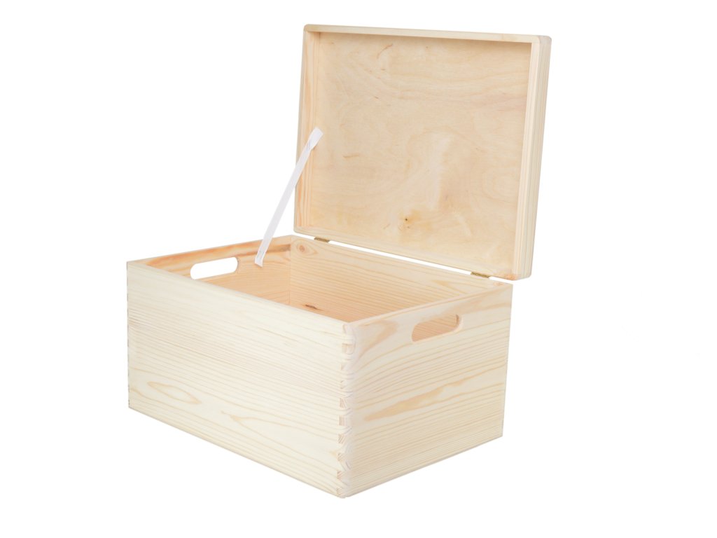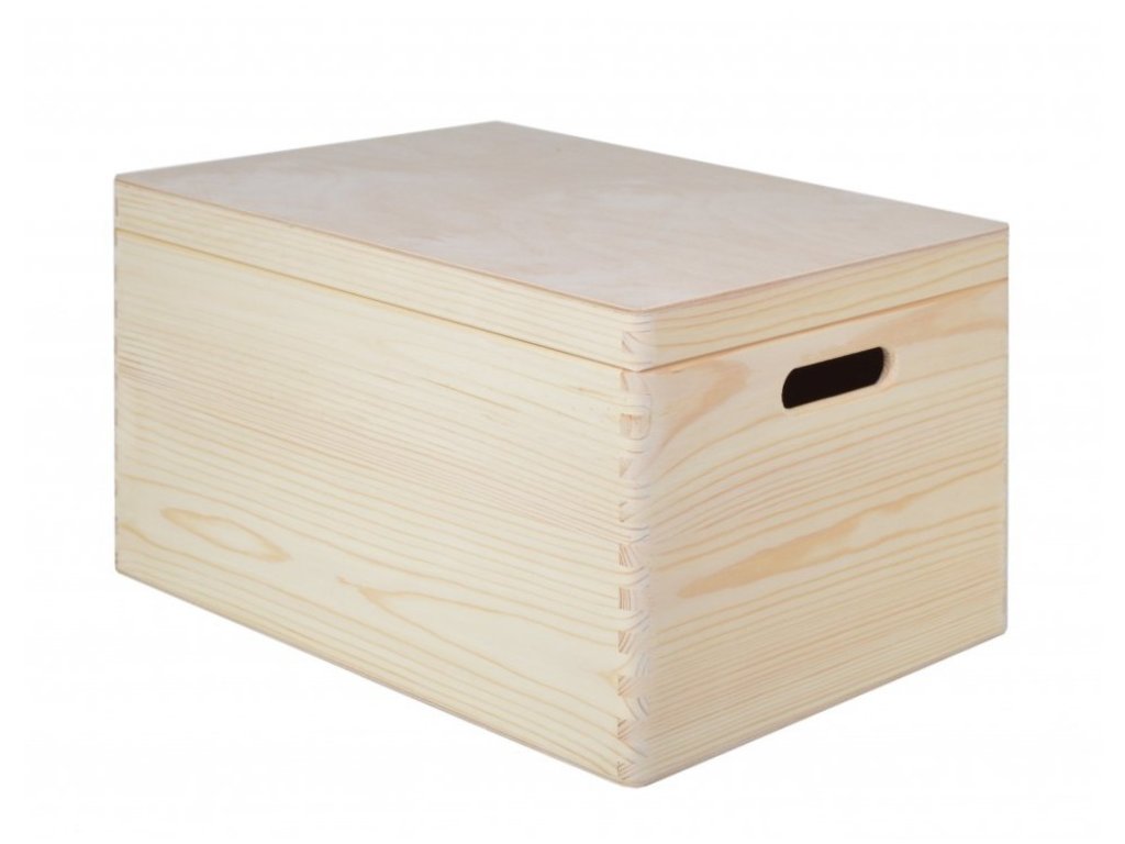 Dřevěná bedýnka s víkem a úchyty po stranách 40 x 30 x 22 cm - přírodní borovice- 2. JAKOST!