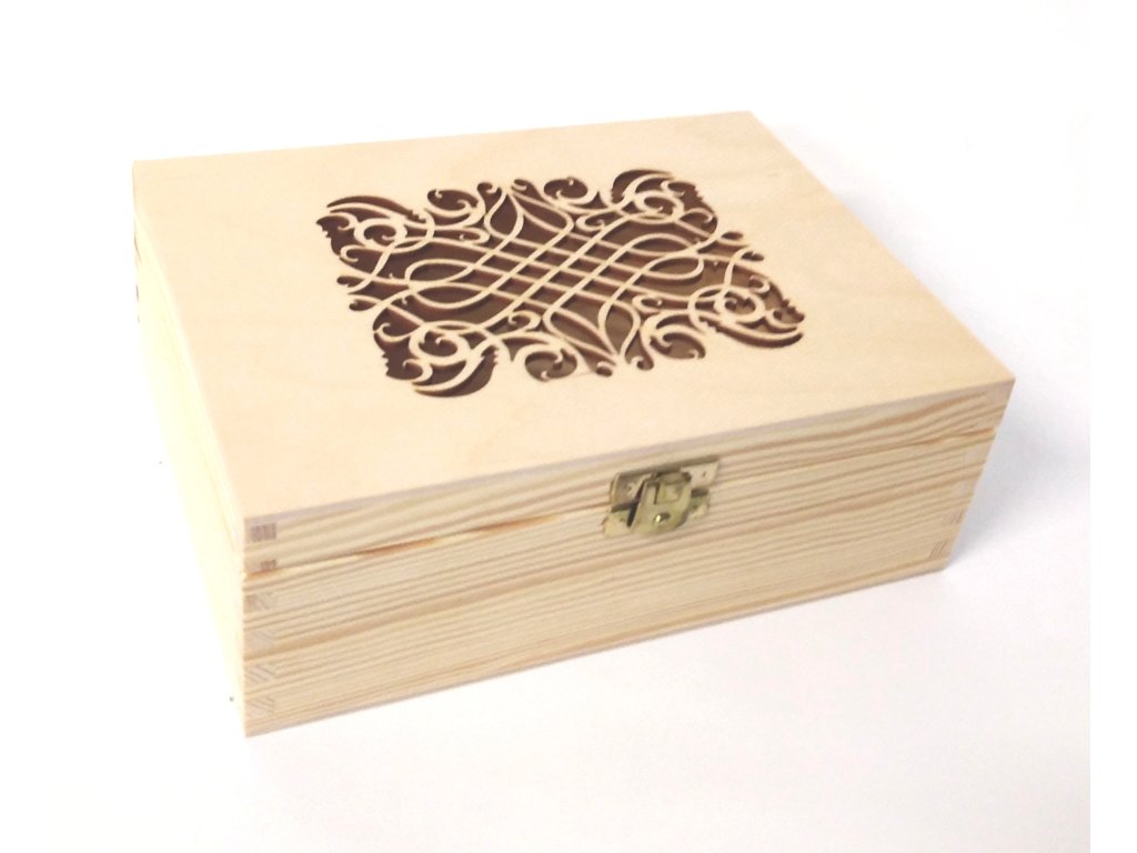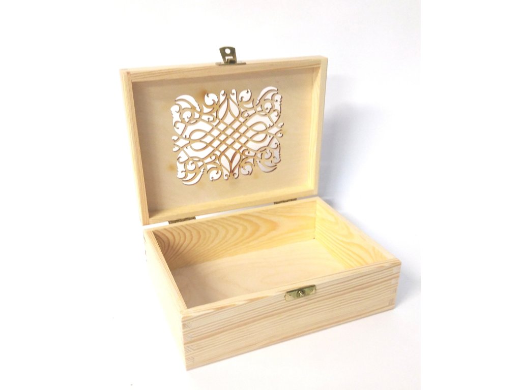 Dřevěná dárková krabička s vyřezávaným víkem a zapínáním - přírodní - 2. JAKOST!