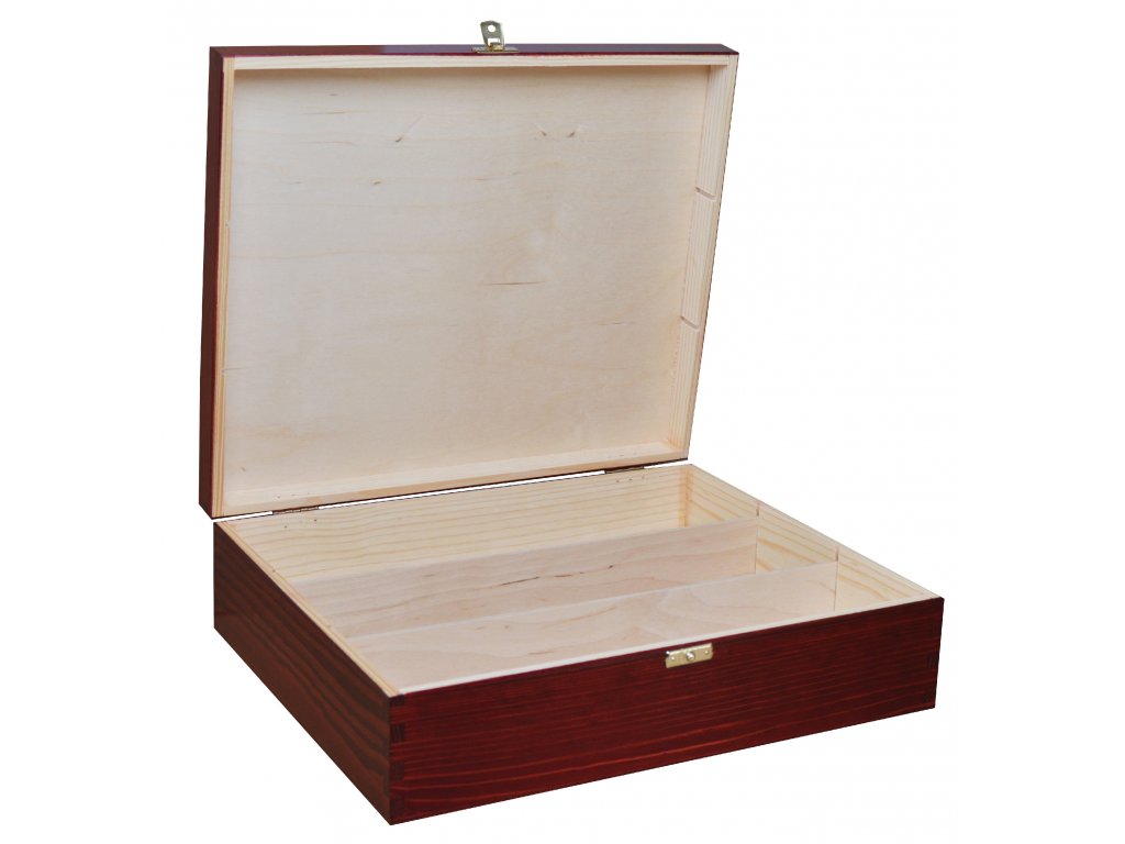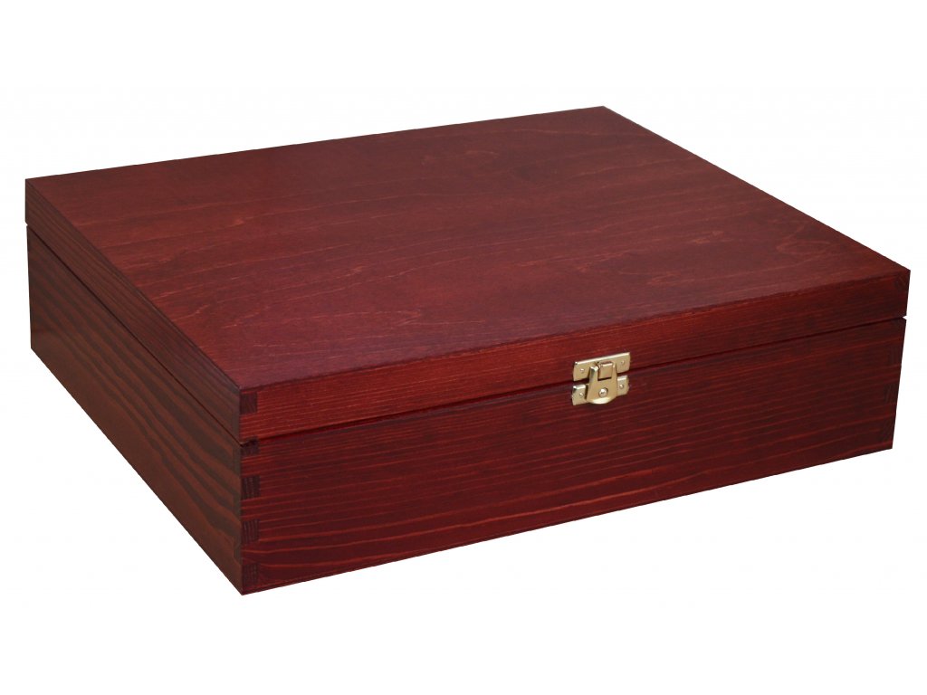 Krabička je namořena na odstín mahagon a nalakována nezávadným lakem. Díky tomu vyniknou veškeré detaily a léta dřeva, ze kterého byla krabička vyrobena.