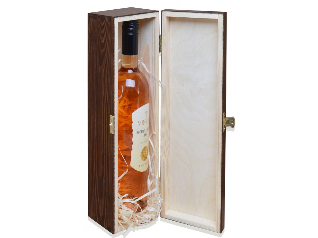 Dřevěná truhlička na jednu láhev dobrého vína. Je vyrobena z pečlivě vybraného borovicového dřeva. Krabička je vhodná pro náročné zákazníky, kteří rádi obdarují své blízké nebo obchodní partnery stylově. Na přání do ní můžeme vypálit také Vaše logo nebo věnování laserem.
