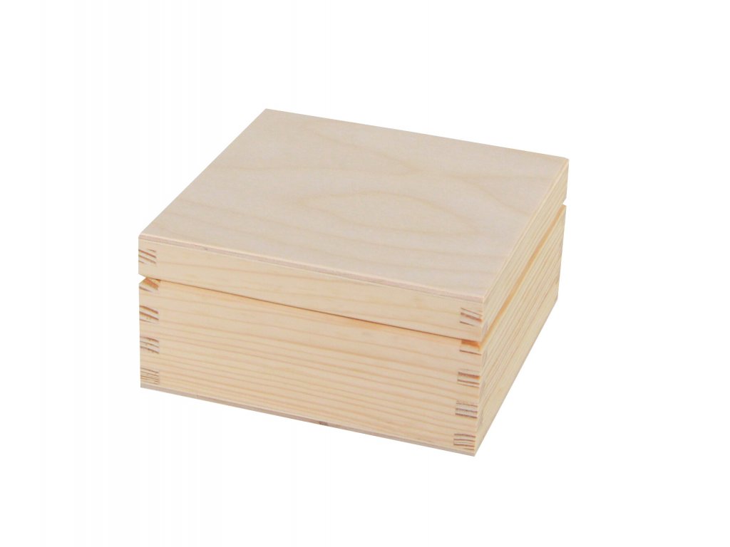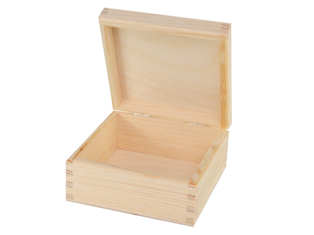 Krabička s víkem vhodná na malé drobnosti, nebo jako dárková krabička na peníze. Borovicové dřevo. Rozměry krabičky: 15 x 15 x 7 cm