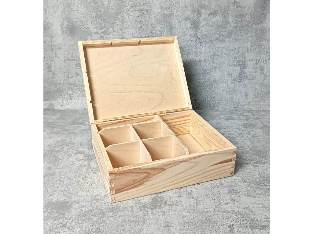 Dřevěná krabička s víkem a organizérem- 25 x 20 x 7 cm, přírodní - 2. JAKOST!