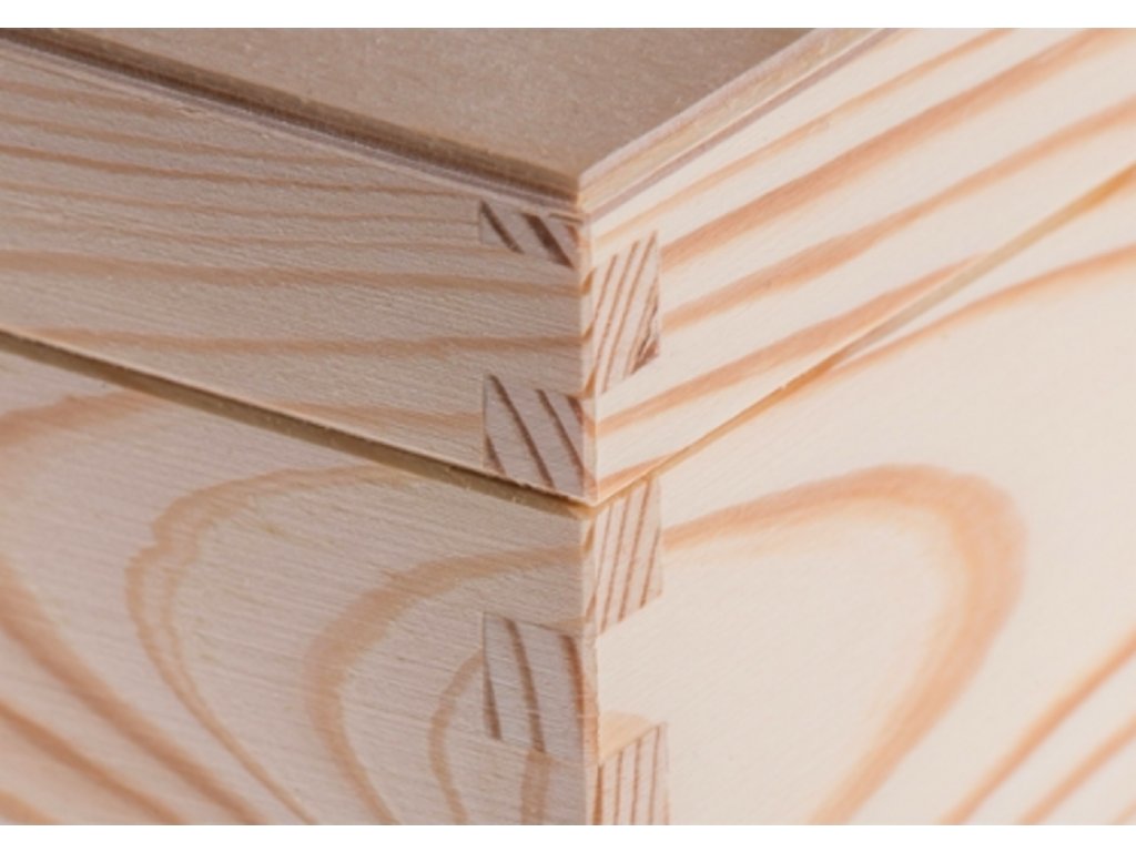 Krabička není ošetřena žádným lakem, ani nátěrem. Je tak možné ji s dětmi pomalovat, ozdobit technikou decoupage, vypálit na ně cokoliv pomocí CO2 laseru a nebo ji nechat tak jak je. Na přírodní totiž krásně vyniknou letokruhy dřeva.