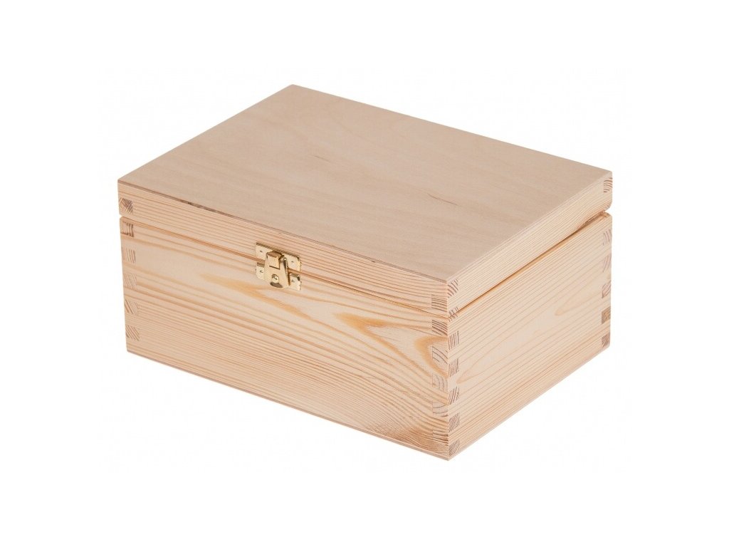 Dřevěná krabička s víkem a zapínáním - 22 x 16 x 10,5 cm, přírodní