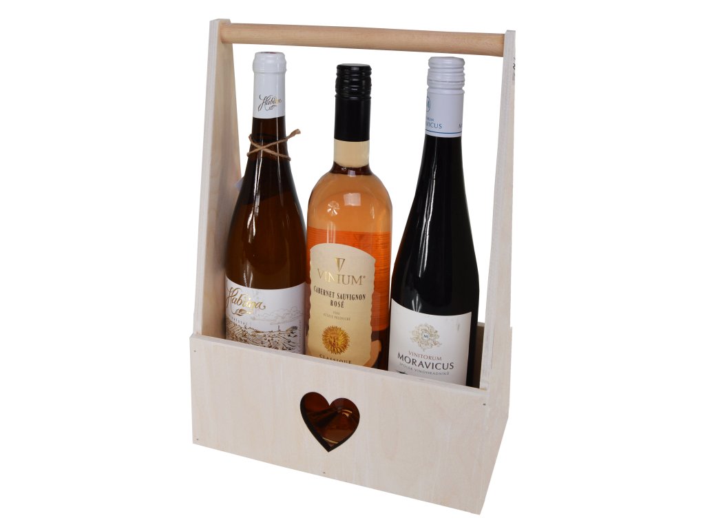Dřevěný box na jednu láhev dobrého vína. Je vyroben z pečlivě vybrané borovicové 8 mm překližky. Nosič je vhodný pro náročné zákazníky, kteří rádi obdarují své blízké nebo obchodní partnery stylově.