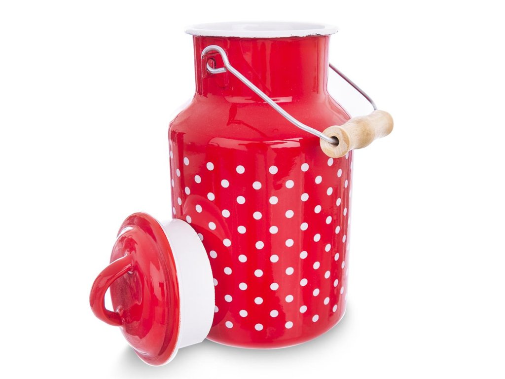 Konvice na mléko smaltovaná, 2 l - Bílá tečka na červeném - 2. JAKOST!