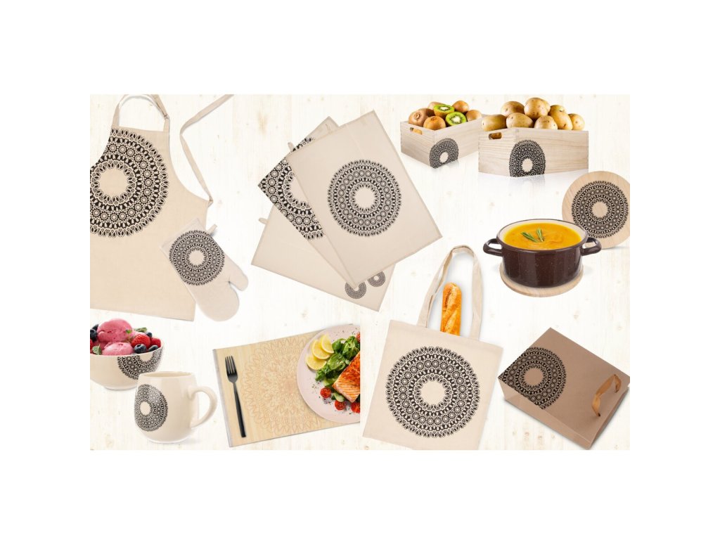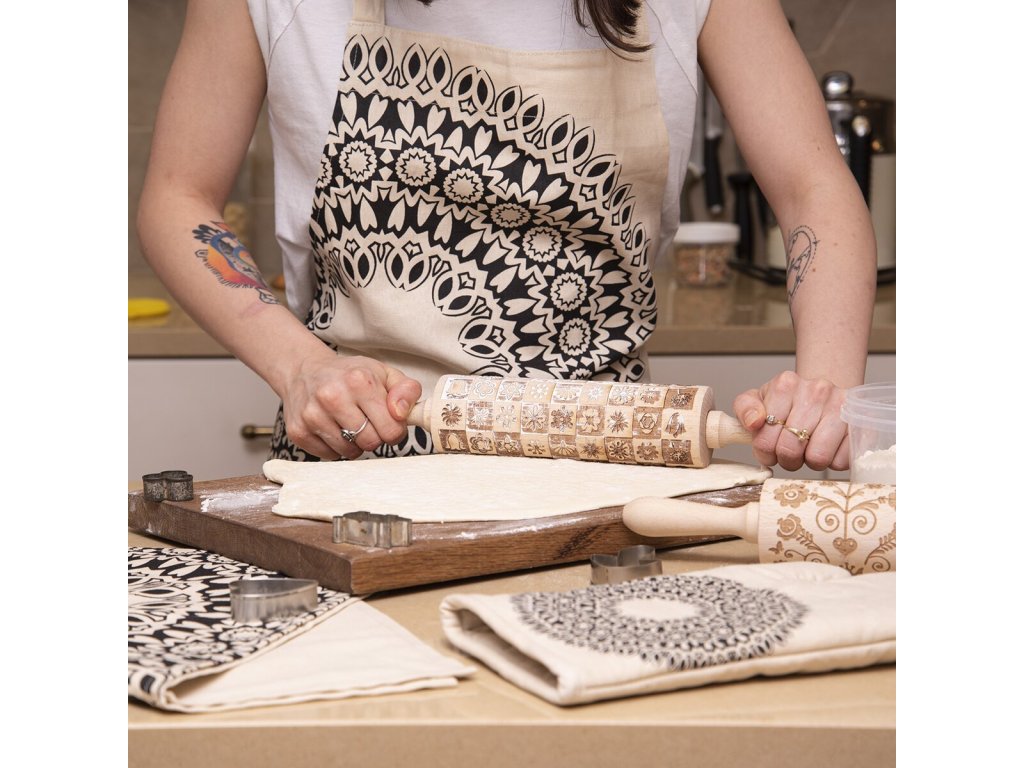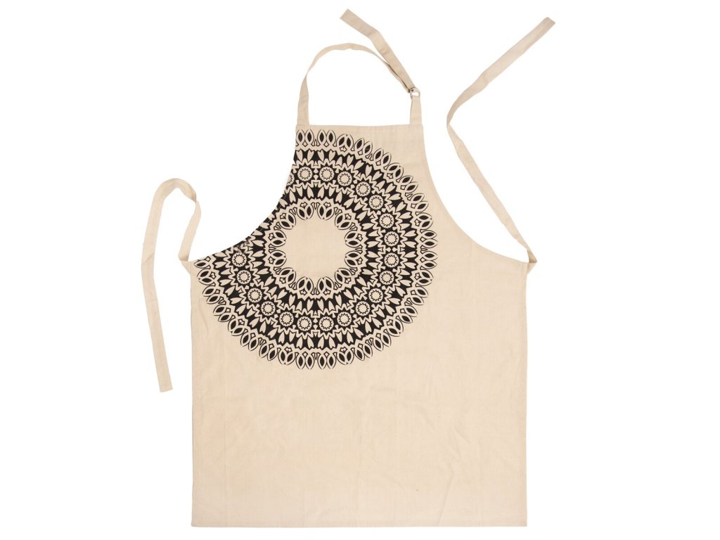 Bavlněná kuchyňská zástěra s kapsou a nastavitelné zavazování kolem krku.