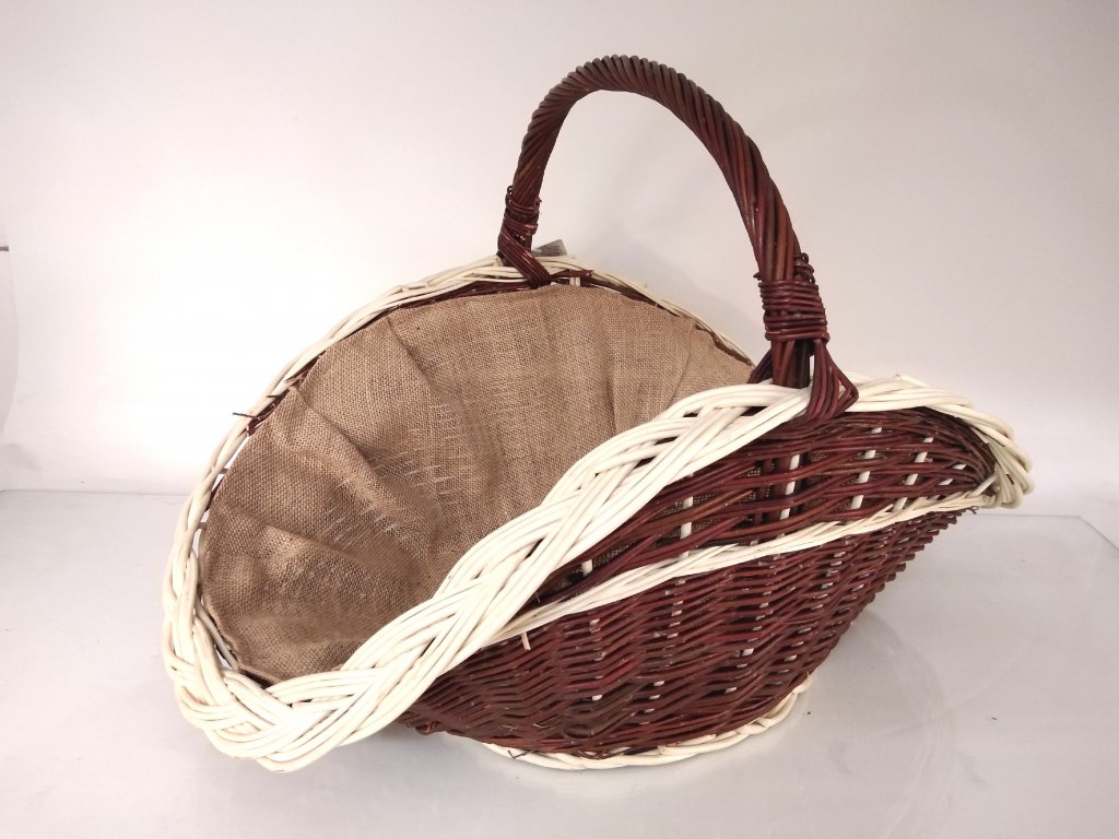 Proutěný koš na dřevo ke krbu Mikuláš - velký, obšitý jutou