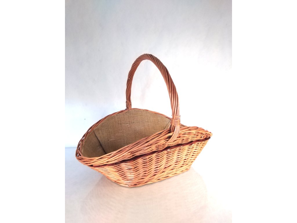 Proutěný koš na dřevo ke krbu Rosťa - velký, obšitý jutou