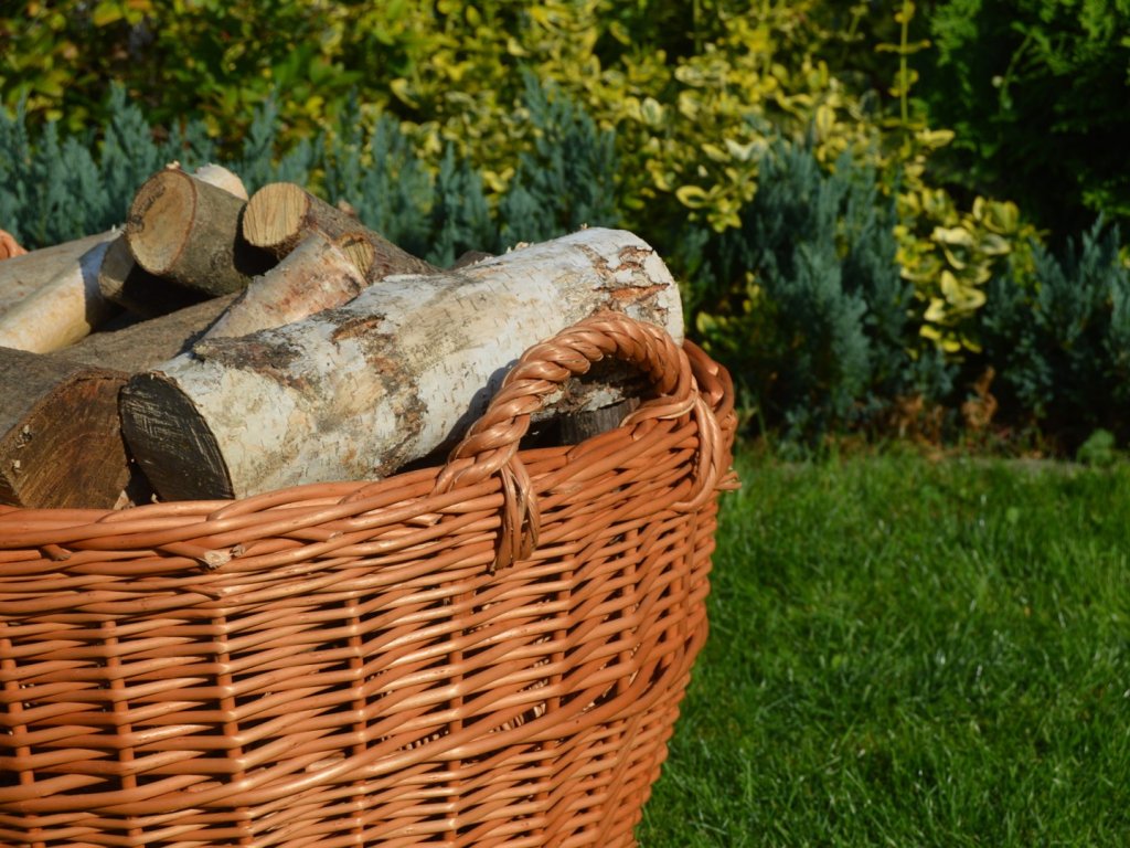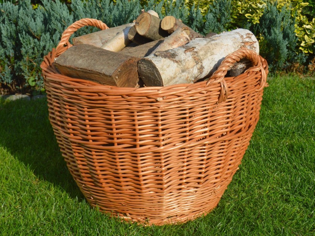Proutěný koš na dřevo s dvěma uchy z loupaného proutí