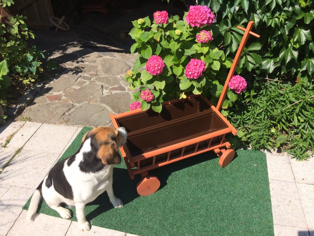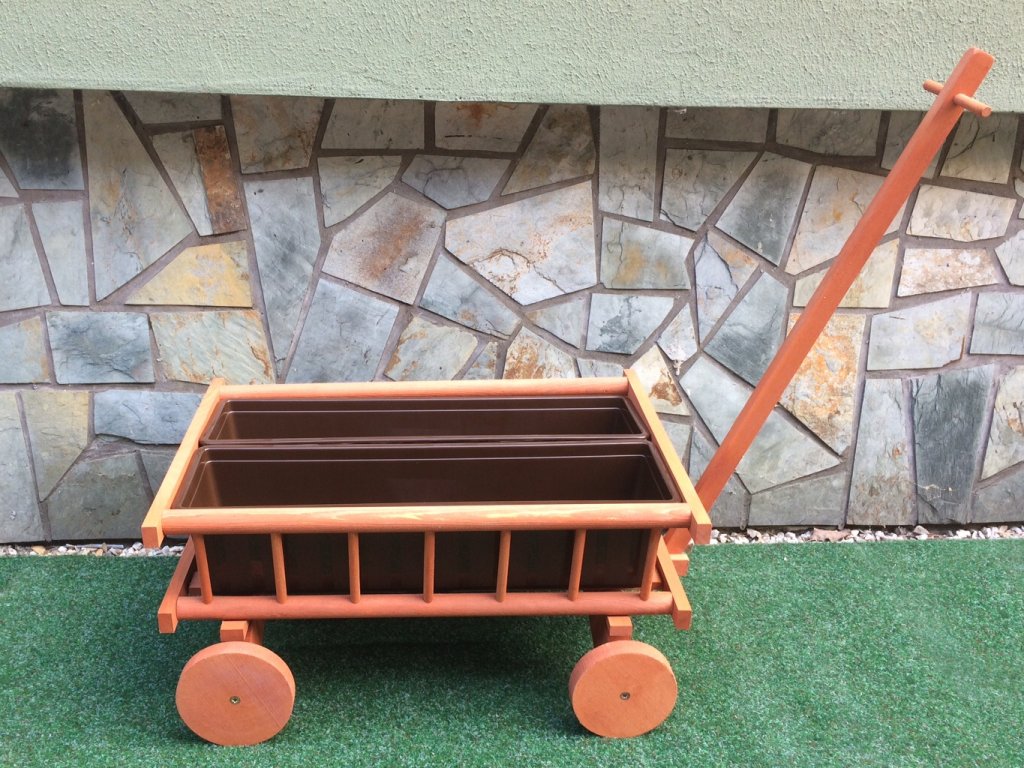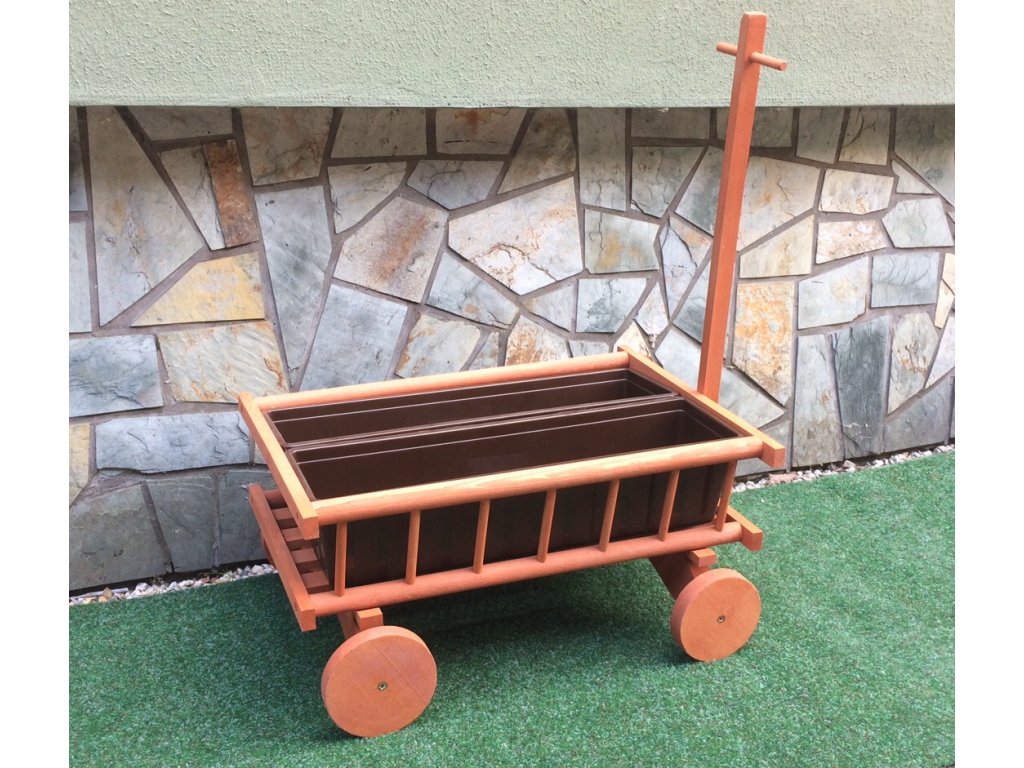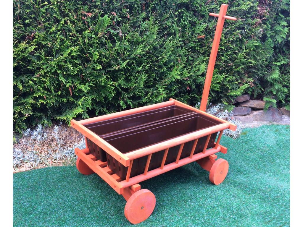 Trakař - žebřinový vozíček na výsadbu květin s dvěma truhlíky