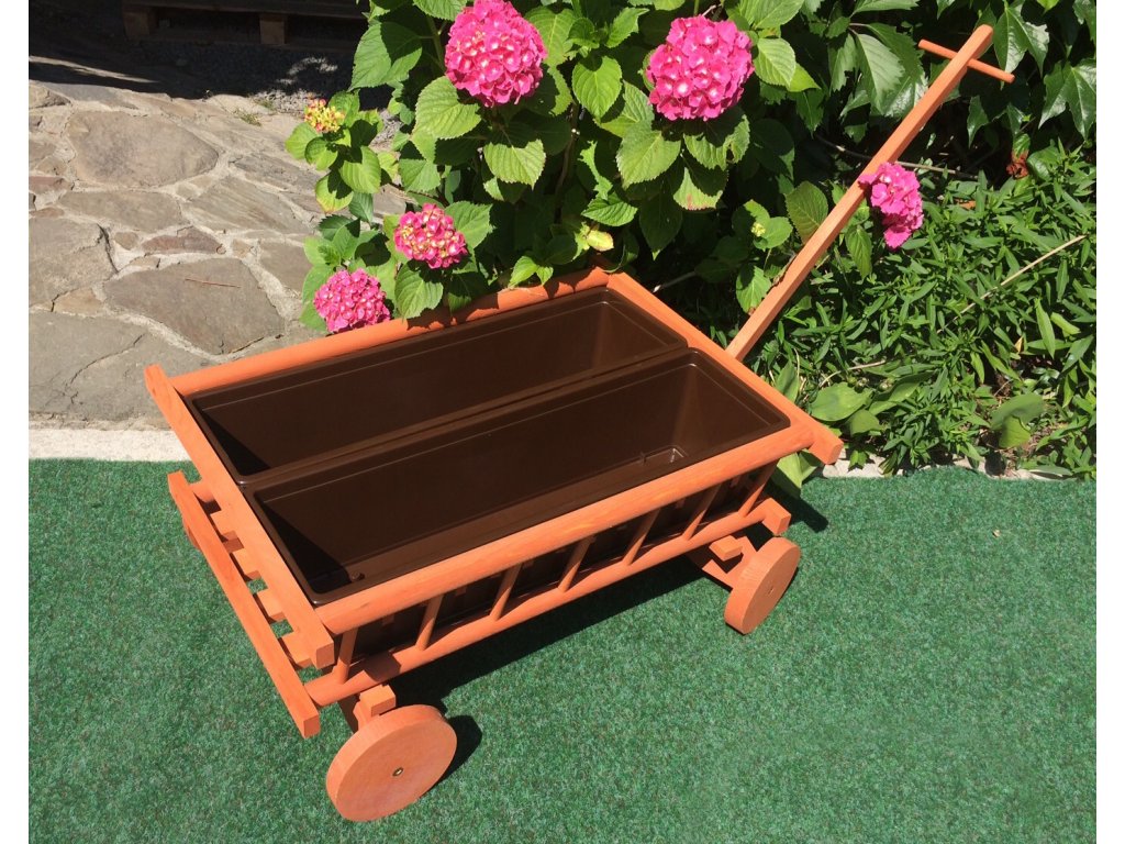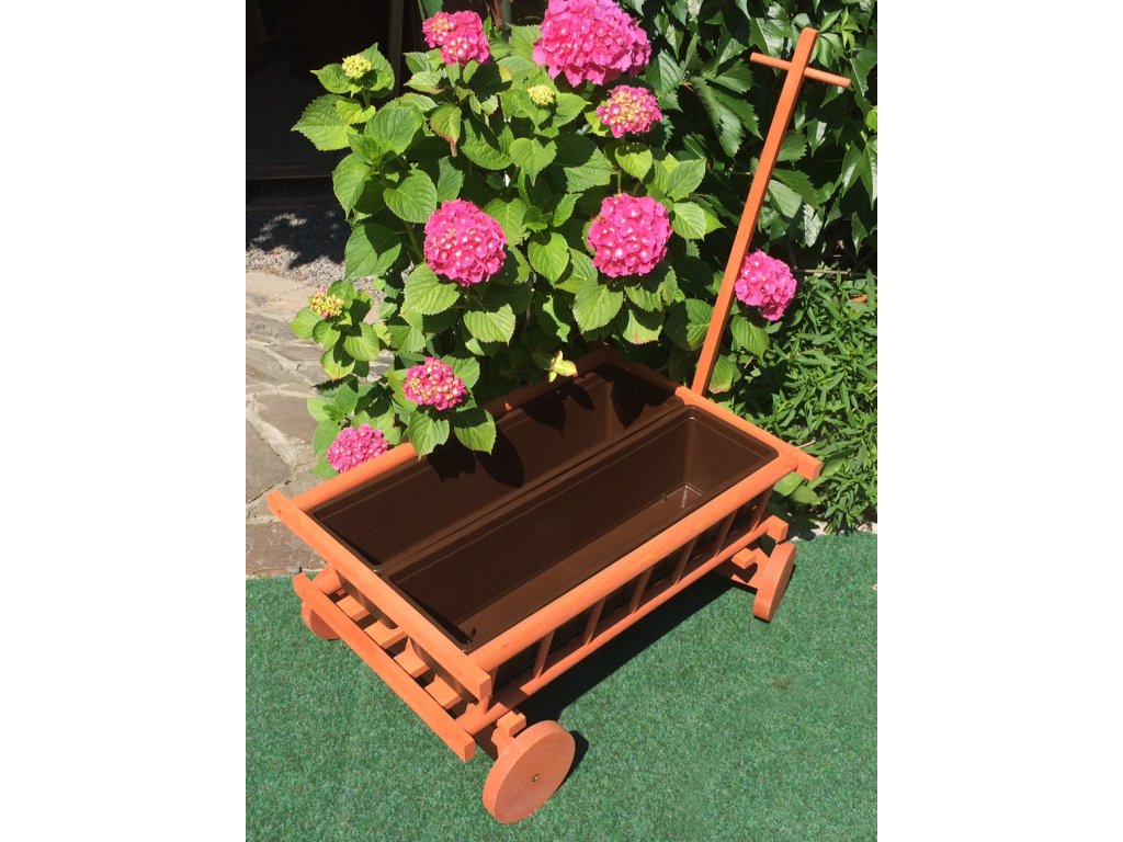 Žebřinový vozík dodáváme spolu s dvěma plastovými truhlíky, do kterých můžete zasadit v podstatě cokoliv - od malých bylinek k okořenění pizzy. S tímto zahradním doplňkem bude vaše zahrada vypadat jako z pohádky. Trakař je vyroben z tvrdého dřeva, proto mu venkovní povětrnostní podmínky nijak neuškodí, navíc je opatřen nátěrem. Využití trakaře se meze nekladou.